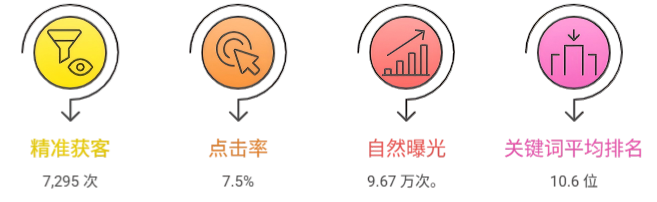 精准获客:7,295次有效点击 半年内,网站将曝光成功转化为 7,295次 实实在在的精准点击。点击量曲线呈现明显的稳步上升趋势,这表明我们已经为网站建立了稳定的流量基本盘,摆脱了初期流量不稳定的局面。