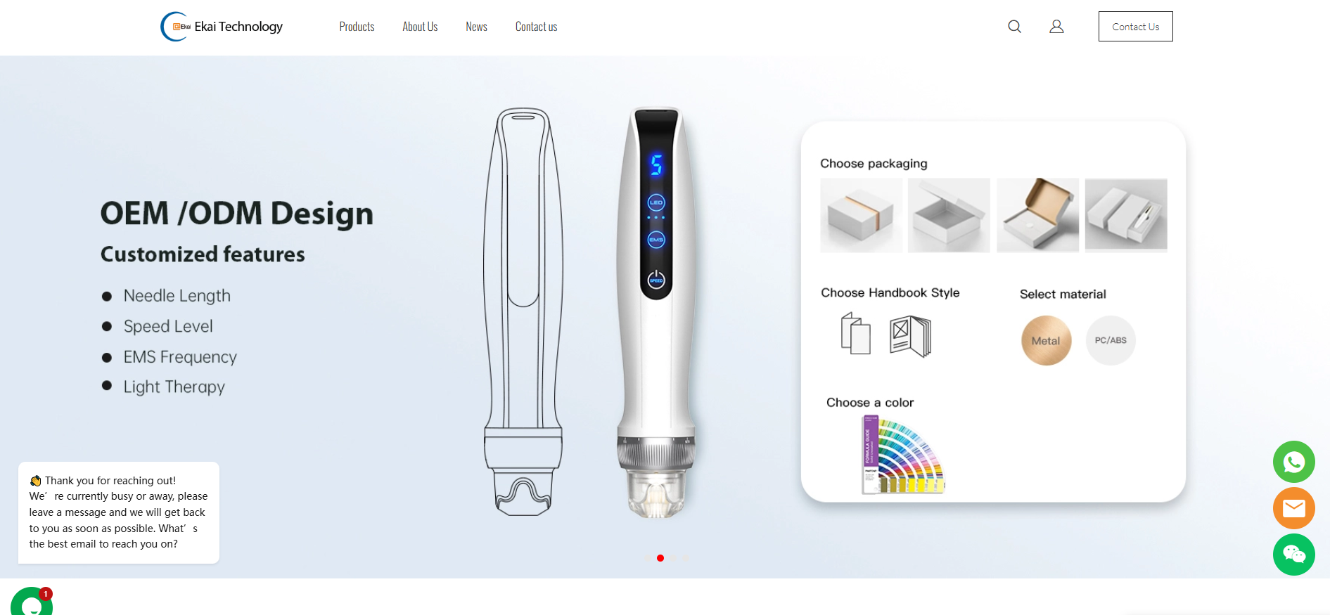 2. 核心关键词规划与页面布局 结合行业搜索数据,筛选出“Dr. Pen Manufacturer”、“ODM microneedle”等高价值 B2B 关键词,制定了主词与长尾词的组合策略。同步规划了官网首页、关于我们(About Us)页面,以及产品解决方案页面的内容布局,确保目标关键词与核心页面一一对应。