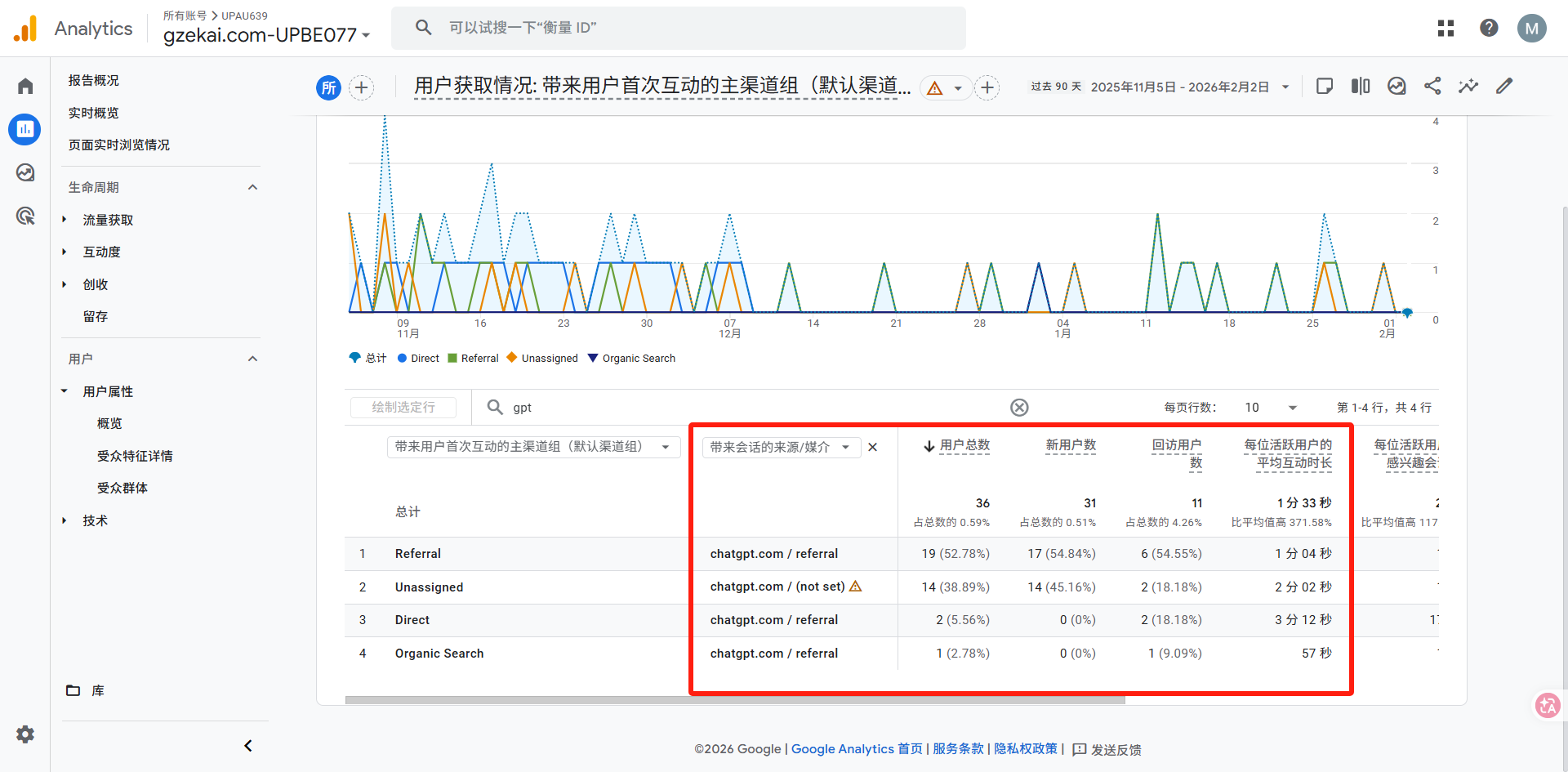 这是本次优化的最大亮点。数据显示,chatgpt.com / referral 已经成为网站的重要流量来源之一。