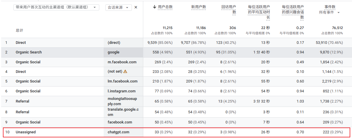 在流量来源分析中,我们捕捉到了一个值得注意的积极信号:网站开始出现来自