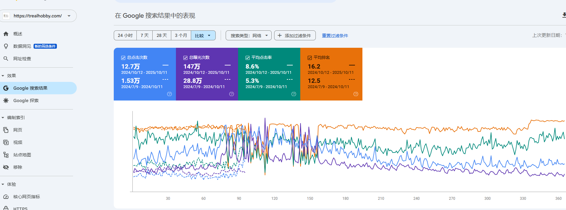 王总的网站是一家专业制造并销售高级CNC加工遥控模型汽车升级配件的公司,产品以铝合金/黄铜材质为主,面向全球RC爱好者及升级用户。我们对这个网站做了全面的 SEO 改进。经过持续优化,网站的关键词排名提升明显,在 Google 上的曝光与点击都比以前增长了很多,整体搜索表现变得更强。